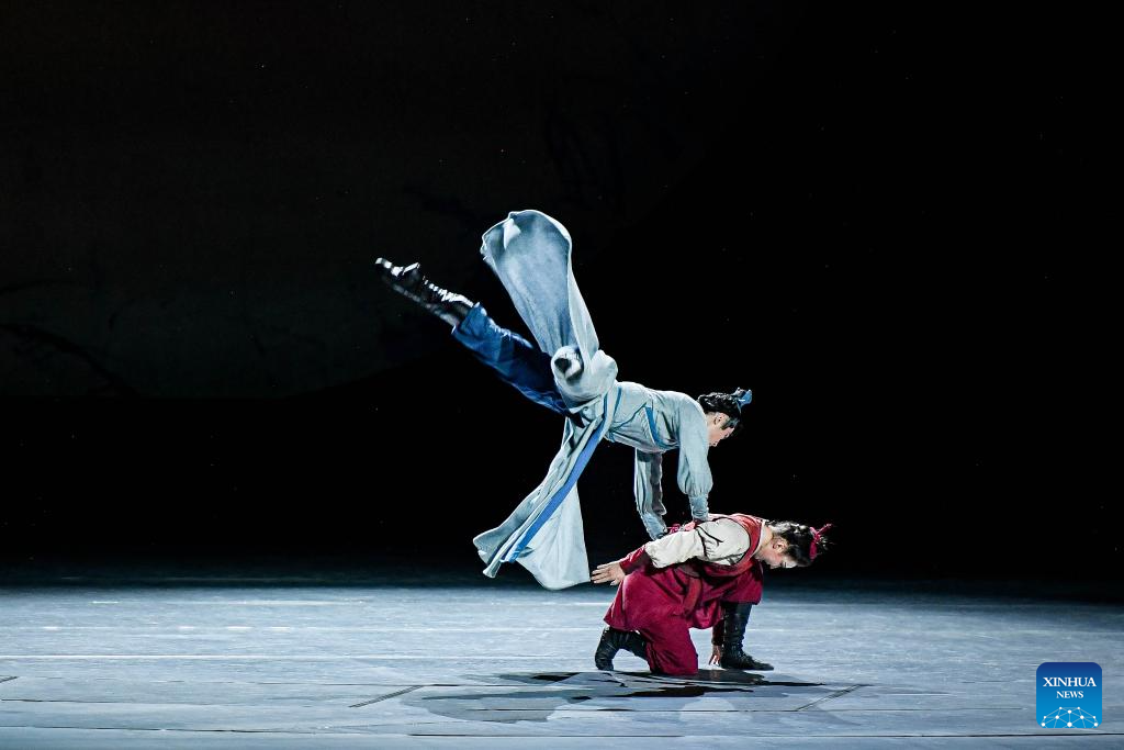 Artists from China perform Chinese dance drama "Mulan" in Boston, Massachusetts, the United States, on Sept. 23, 2023. The Chinese dance drama "Mulan" was staged in a theatre in Boston on Sept. 23, and will have shows on tour in Washington, D.C. thereafter. This was the debut of the drama in the United States, and over 1,600 audiences watched the performance. (Photo by Zhu Ziyu/Xinhua)