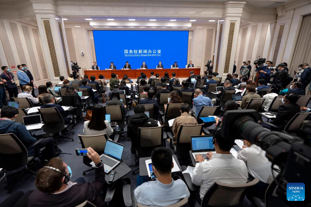 A press conference on a white paper titled "A Global Community of Shared Future: China's Proposals and Actions" is held by the State Council Information Office in Beijing, capital of China, Sept. 26, 2023. The white paper was released by the State Council Information Office on Tuesday. The white paper called for efforts to build an open, inclusive, clean and beautiful world that enjoys lasting peace, universal security, and common prosperity, turning people's longing for a better life into reality. (Xinhua/Cai Yang)