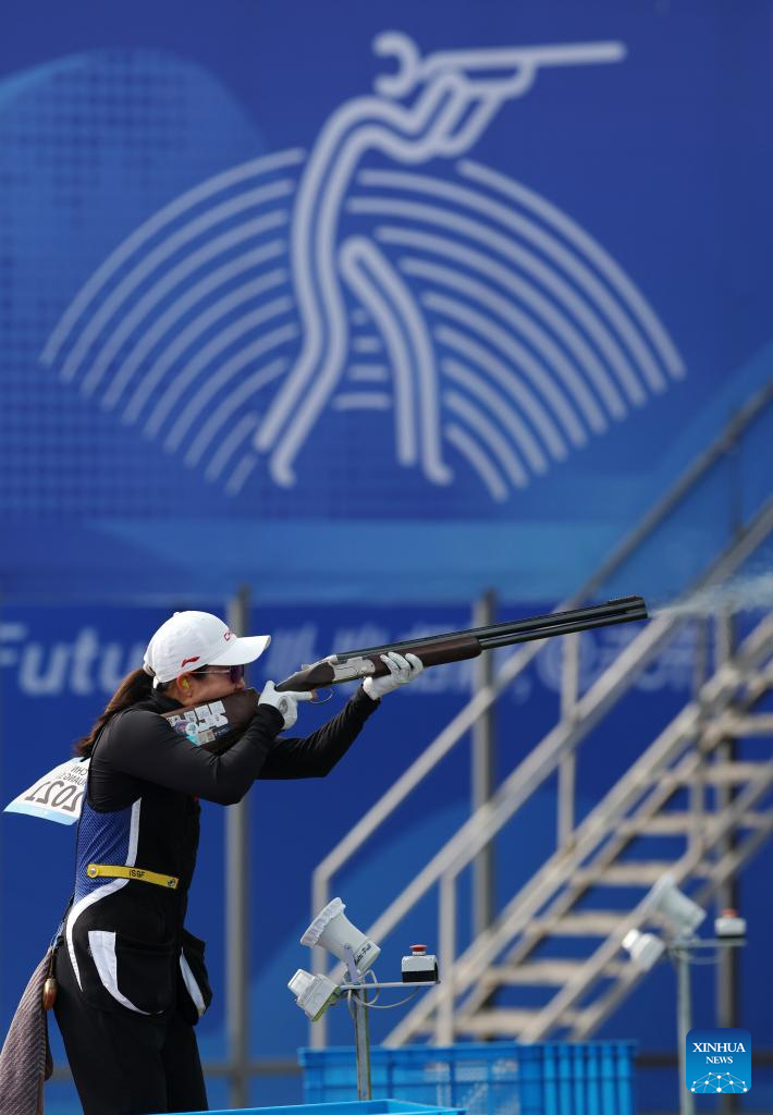 Gao Jinmei of China competes during the Phase 1 of Women's Team of Skeet-75 at the 19th Asian Games in Hangzhou, east China's Zhejiang Province, Sept. 26, 2023. (Xinhua/Du Xiaoyi)