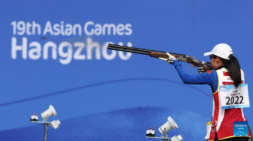 Huang Sixue of China competes during the Phase 1 of Women's Team of Skeet-75 at the 19th Asian Games in Hangzhou, east China's Zhejiang Province, Sept. 26, 2023. (Xinhua/Du Xiaoyi)