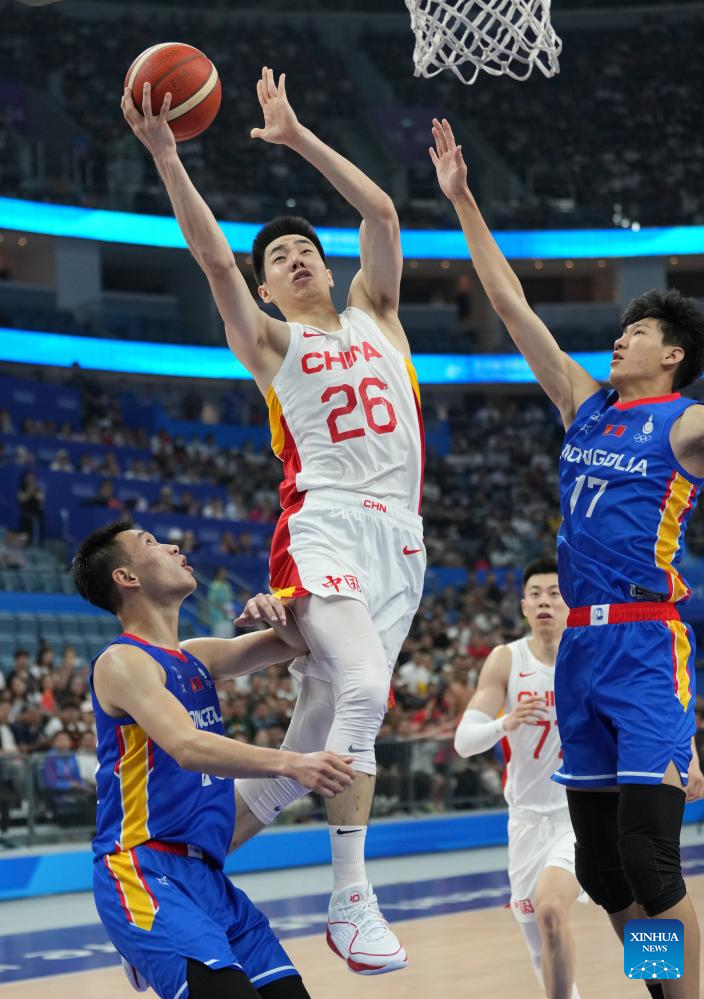 HANGZHOU, Sept. 26 (Xinhua) -- Zhang Zhenlin scored 19 points as China's men's basketball team kicked off its Asiad journey by thrashing Mongolia 89-50 in a Group B match here on Tuesday.