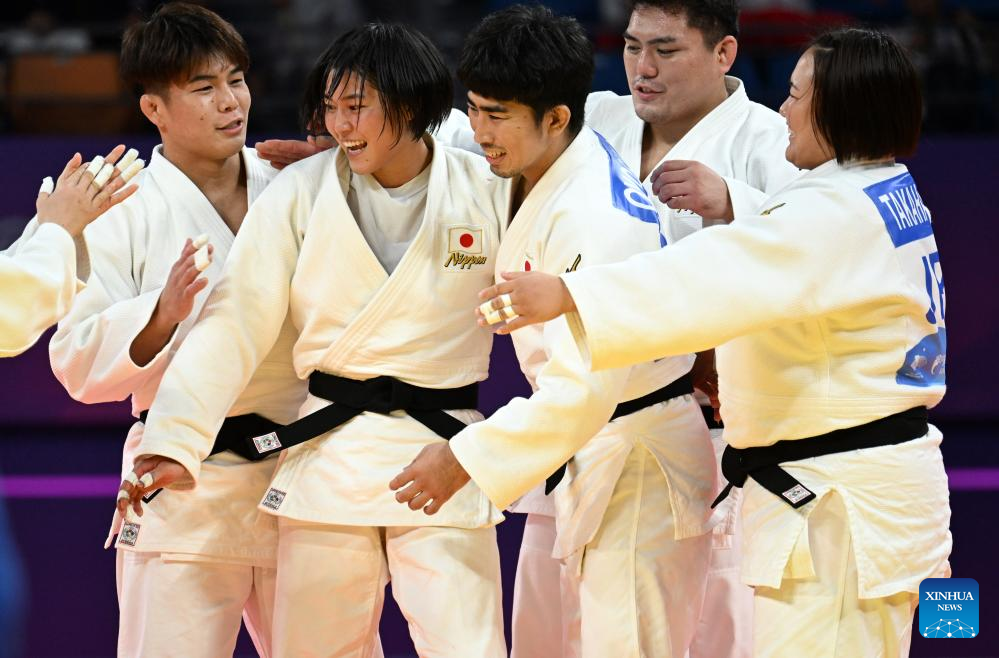 HANGZHOU, Sept. 27 (Xinhua) -- Japan won back-to-back Asian Games gold medals in the mixed team judo event after beating Uzbekistan 4-0 at the Hangzhou Asiad here on Wednesday.