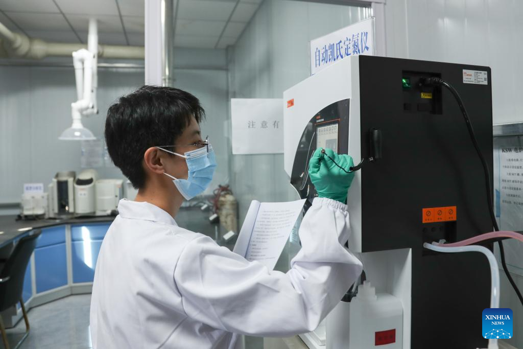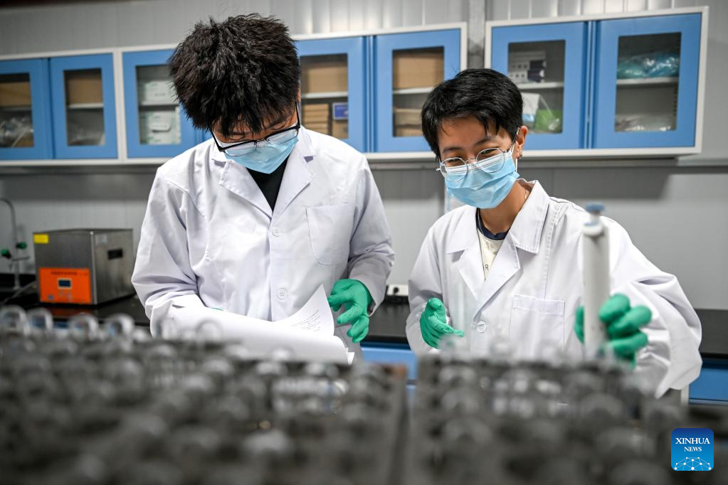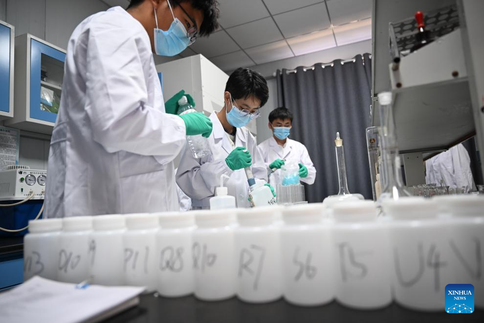 Wu Rong works at a laboratory in Bayannur, north China's Inner Mongolia Autonomous Region, Sept. 14, 2023. (Xinhua/Wang Kaiyan)