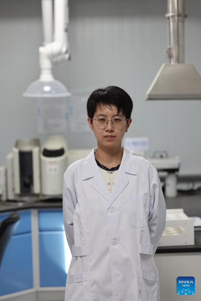 Wu Rong poses for a photo at a laboratory in Bayannur, north China's Inner Mongolia Autonomous Region, Sept. 14, 2023. (Xinhua/Xing Guangli)