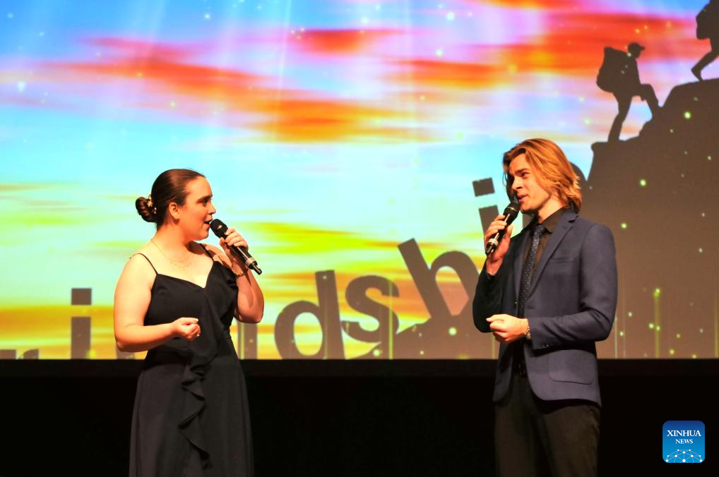 Australian youths sing Chinese version of the song "Auld Lang Syne" during a cultural evening to celebrate the upcoming Mid-Autumn Festival and Chinese National Day in Canberra, Australia, Sept. 23, 2023. Various celebrations are held across the world with the approaching of Mid-Autumn Festival. (Xinhua/Zhang Jianhua)