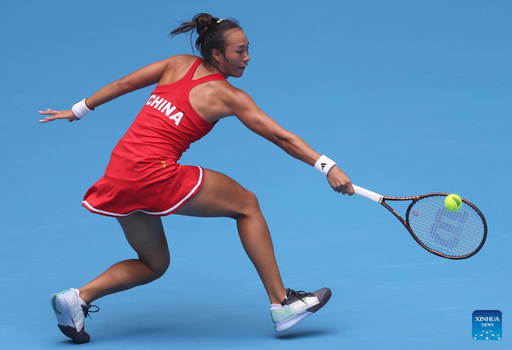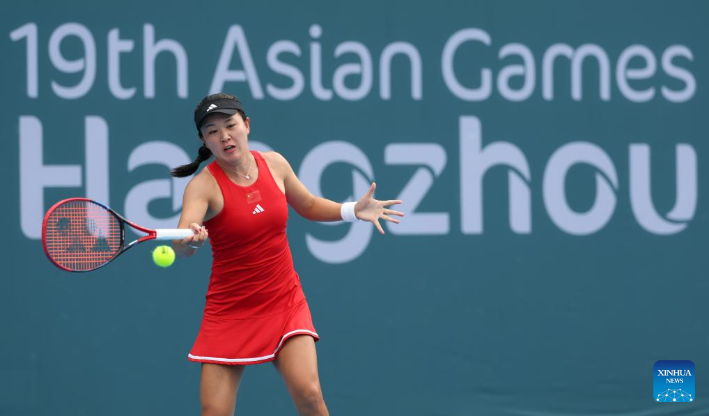 HANGZHOU, Sept. 28 (Xinhua) -- Chinese tennis star Zheng Qinwen powered into the women's singles final with a 6-1, 6-7 (5), 6-3 victory over Alexandra Eala of the Philippines, and will contend for the title with her compatriot Zhu Lin at the Hangzhou Asian Games on Thursday.