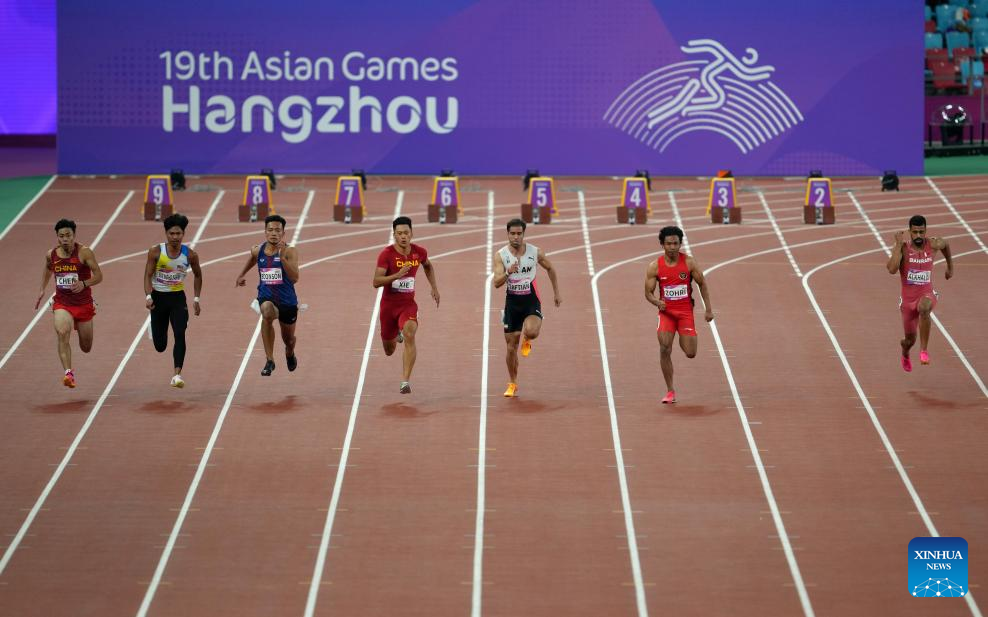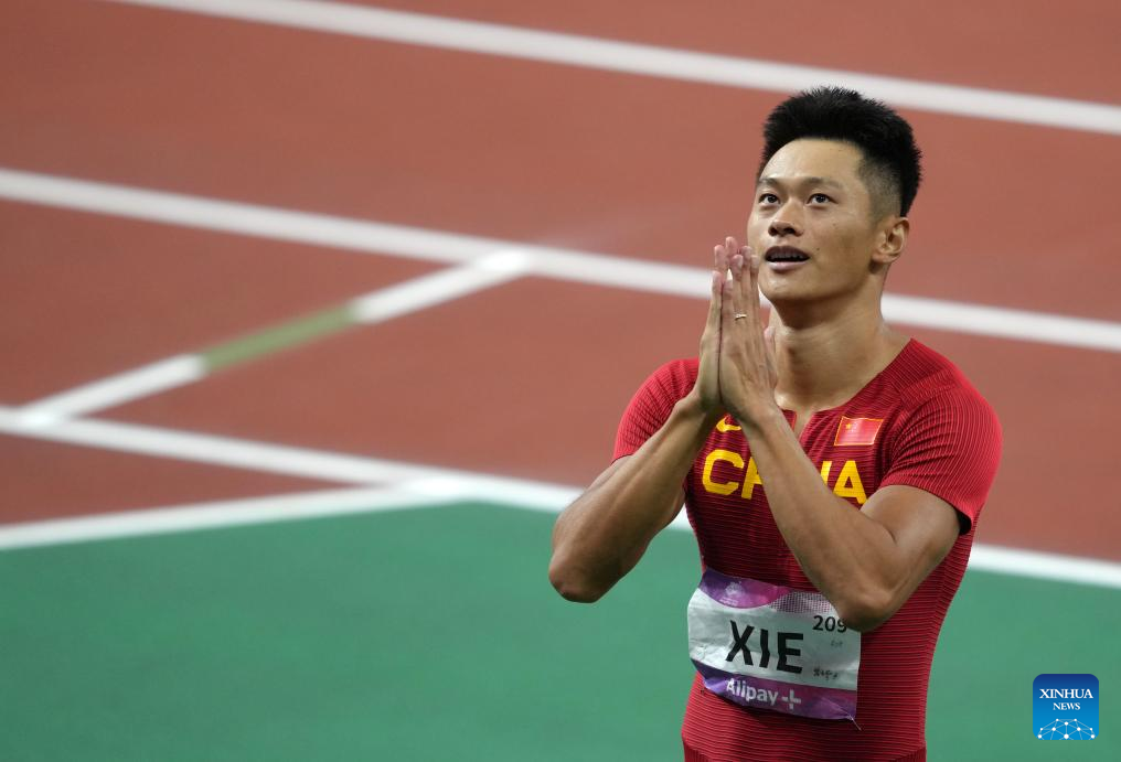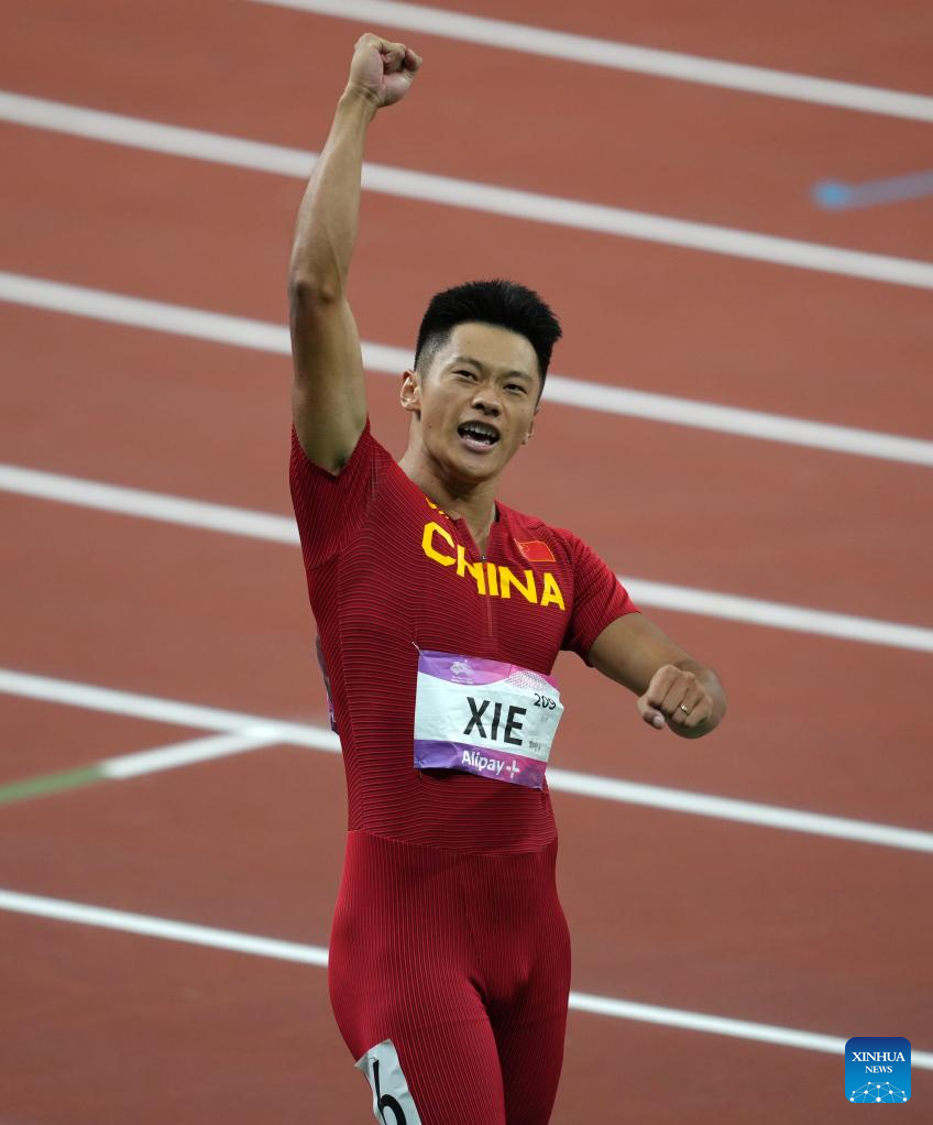 HANGZHOU, Sept. 30 (Xinhua) -- China's Xie Zhenye clinched the men's 100m gold at the Hangzhou Asian Games here on Saturday.