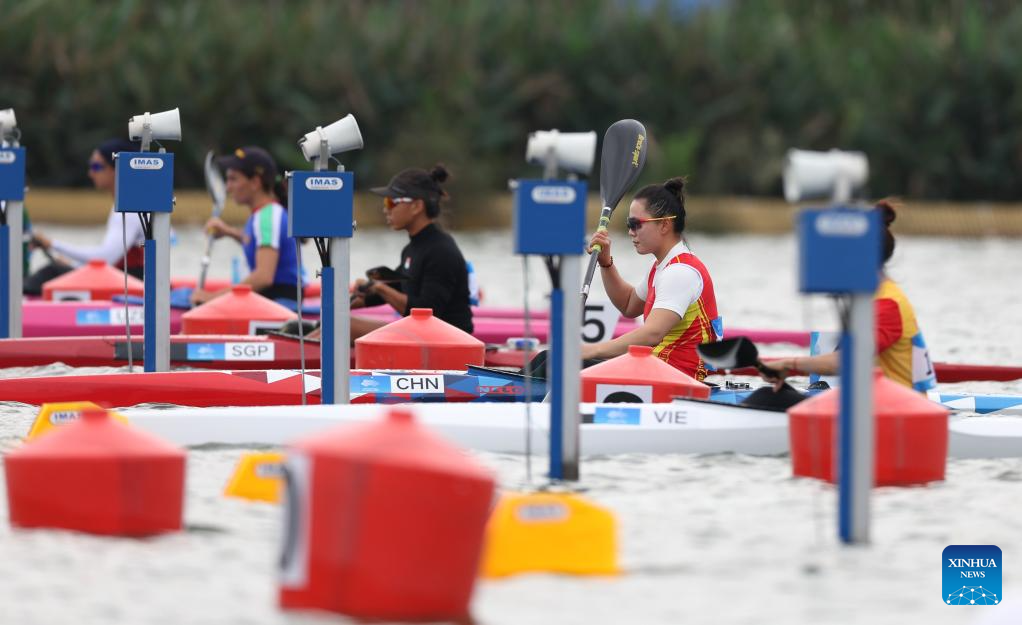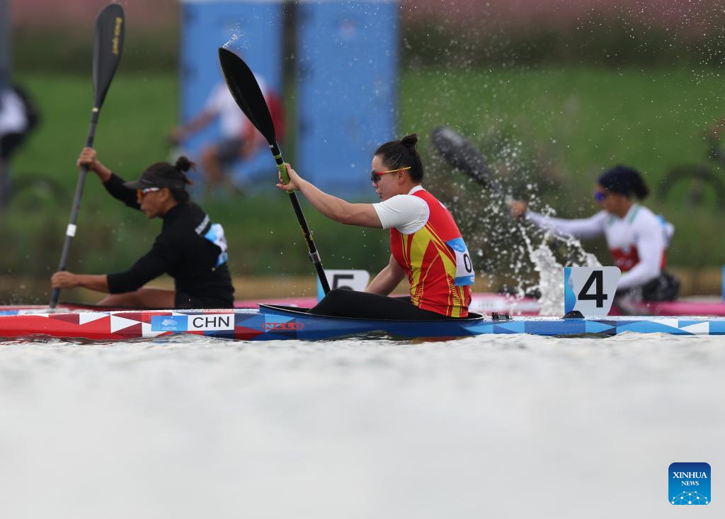 Lin Wenjun of China competes during Women's Canoe Single 200m Heat of Canoe Sprint at the 19th Asian Games in Hangzhou, east China's Zhejiang Province, Oct. 1, 2023. (Xinhua/Du Xiaoyi)