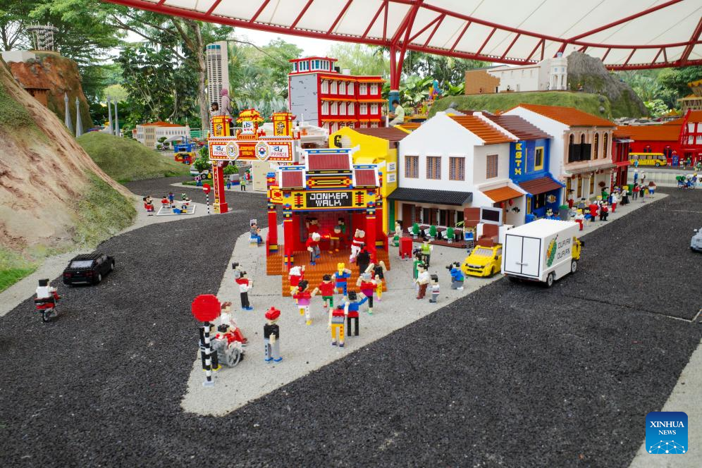This photo taken on Oct. 6, 2023 shows a model of Jonker Walk in Malacca built with Lego bricks displayed at Legoland Malaysia in Johor Bahru, Malaysia. (Xinhua/Cheng Yiheng)