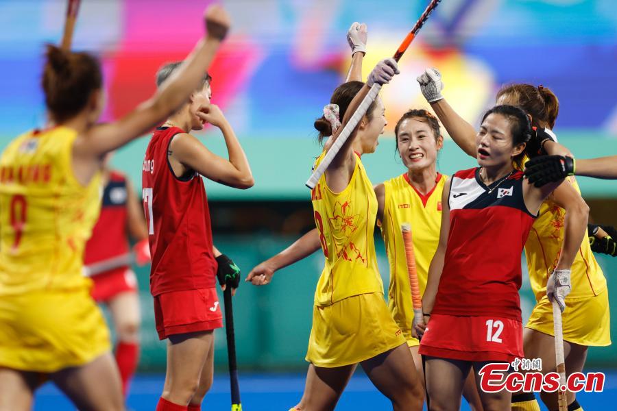 China beat South Korea 2-0 in the women's hockey final to pocket the gold medal at the Hangzhou Asian Games on Saturday.