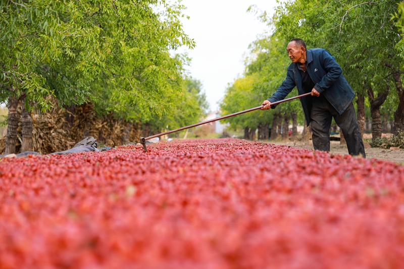 In pics: farmers dry golden-silk jujubes on sunny day in E China's Shandong (2)