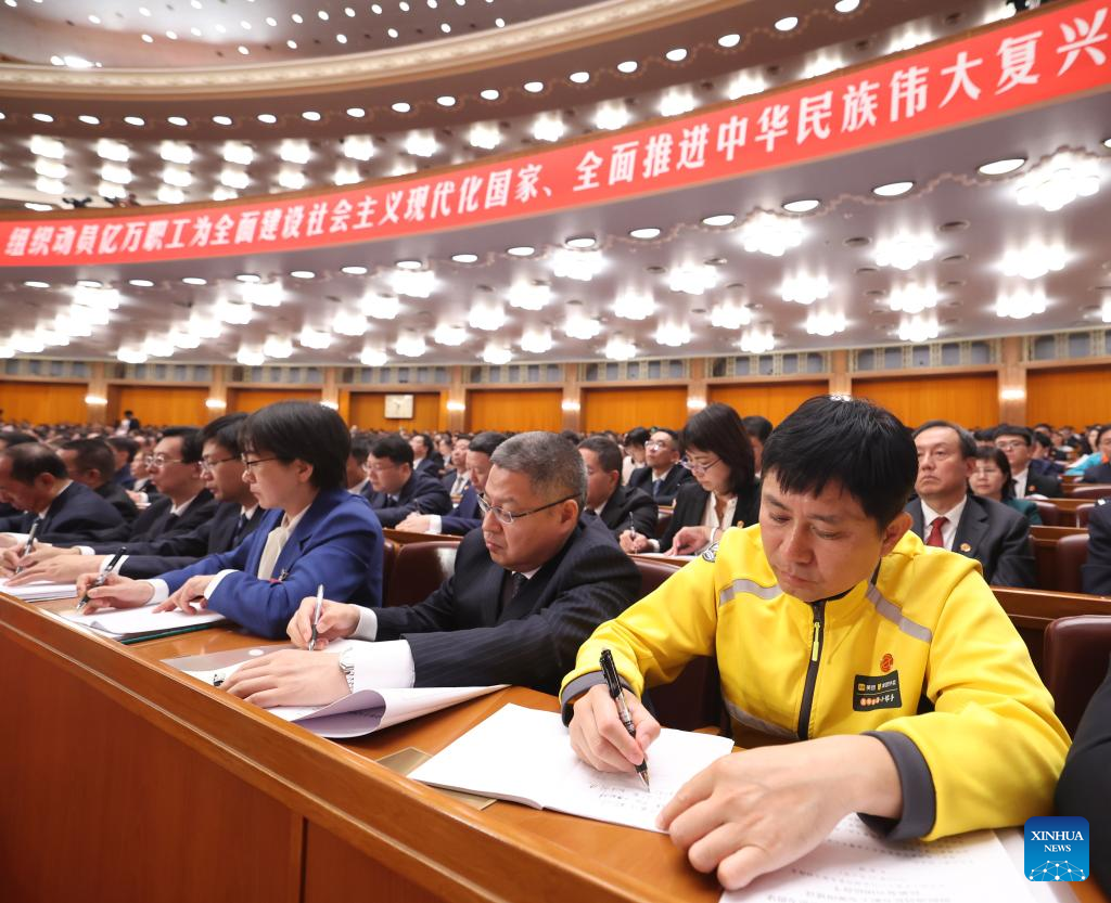 The 18th National Congress of the All-China Federation of Trade Unions (ACFTU) opens at the Great Hall of the People in Beijing, capital of China, Oct. 9, 2023. (Xinhua/Wang Ye)