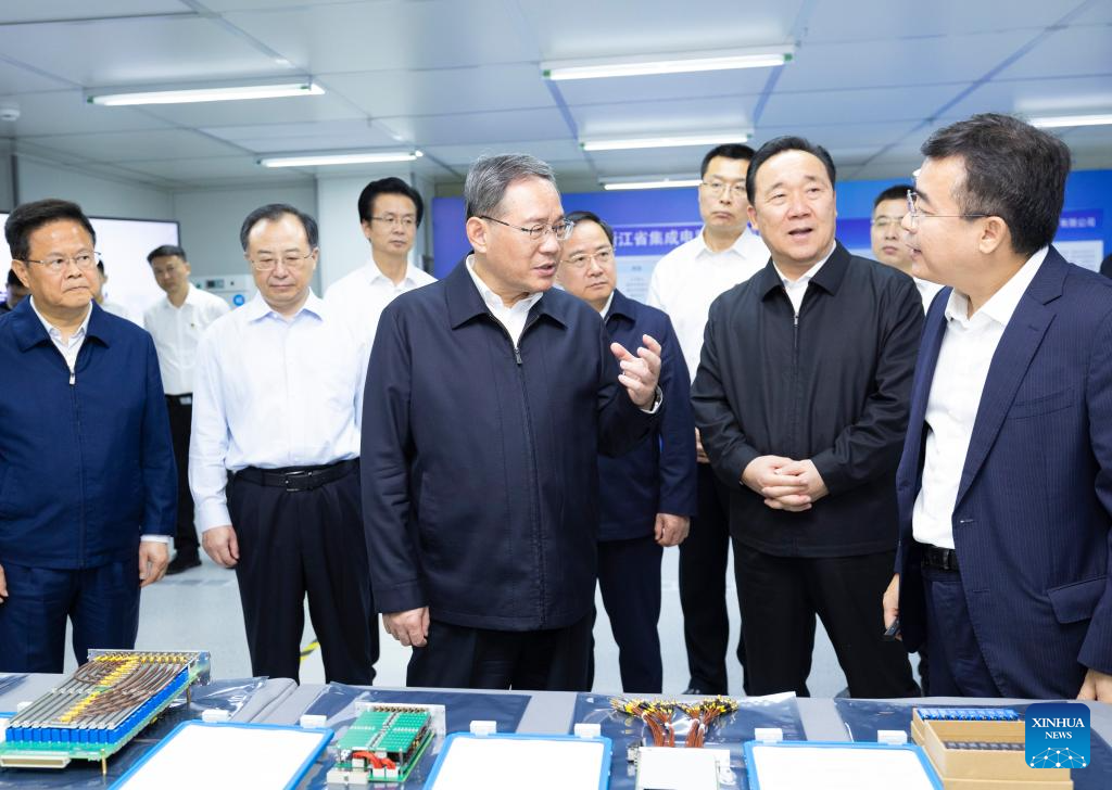 Chinese Premier Li Qiang, also a member of the Standing Committee of the Political Bureau of the Communist Party of China Central Committee, visits Semitronix Corporation, a semiconductor equipment supplier, in east China's Zhejiang Province, Oct. 7, 2023. Li made an inspection tour in east China's Zhejiang Province from Oct. 7 to 9. (Xinhua/Huang Jingwen)