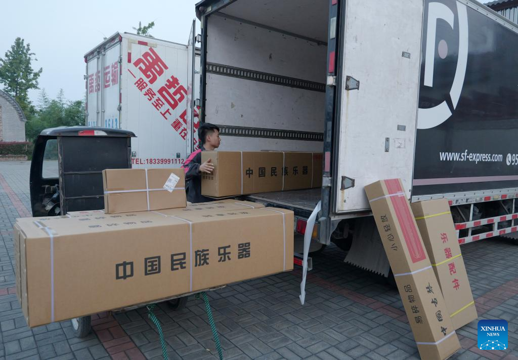 A deliveryman loads instruments at Lankao County of Kaifeng City, central China's Henan Province, Oct. 9, 2023. (Xinhua/Li Jianan)