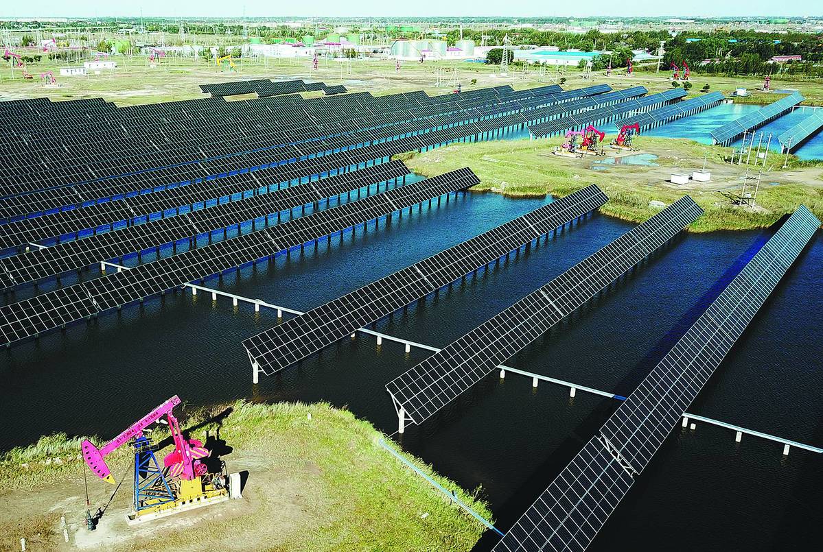 A photovoltaic plant at the Daqing oilfield provides solar power for the site. WANG JIANWEI/XINHUA