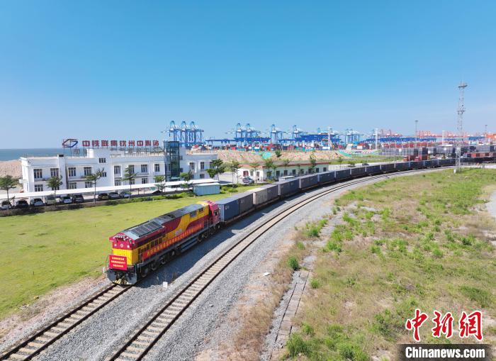 A rail-sea intermodal freight train of the New International Land-Sea Trade Corridor departed from Qinzhou, south China's Guangxi Zhuang Autonomous Region on Oct. 8, carrying 110 containers of Indonesian ghee, Vietnamese sweet potato starch and Hainan coconut juice.