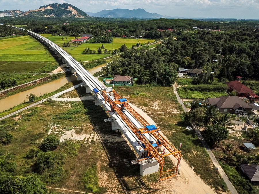 This aerial photo taken on April 26, 2023 shows a construction site of the East Coast Rail Link (ECRL), a major infrastructure project under the Belt and Road Initiative (BRI) in Kelantan, Malaysia. (Xinhua/Zhu Wei)
