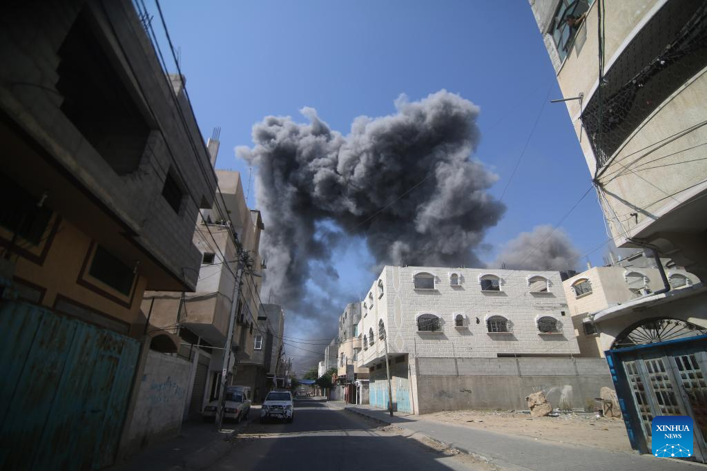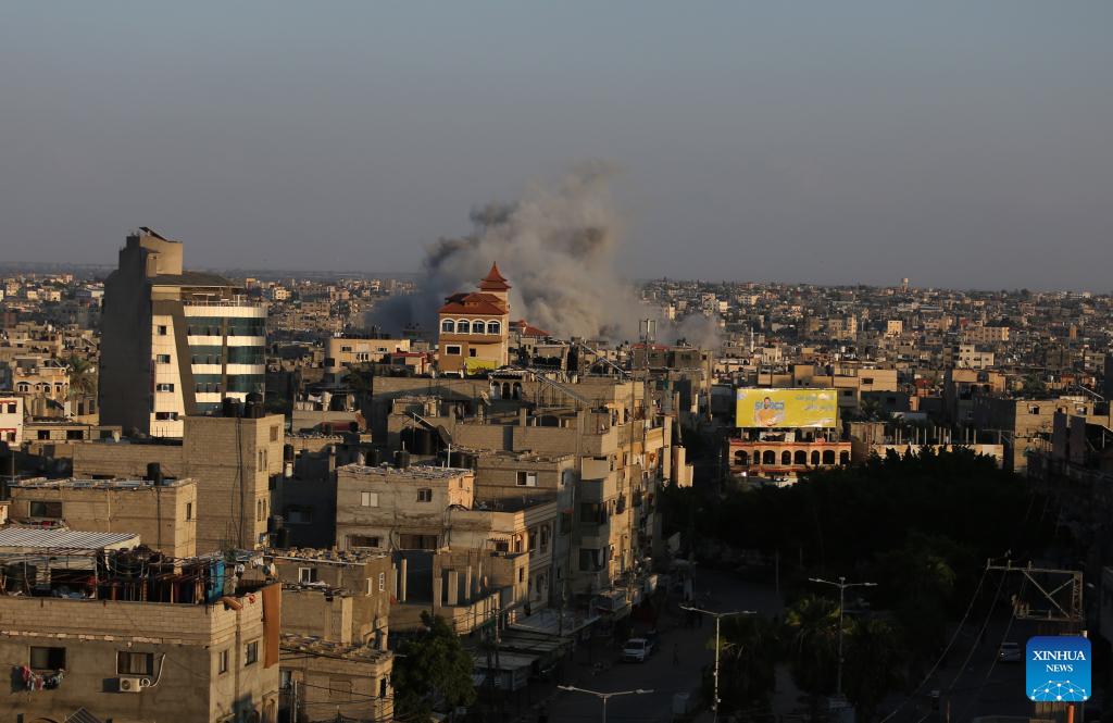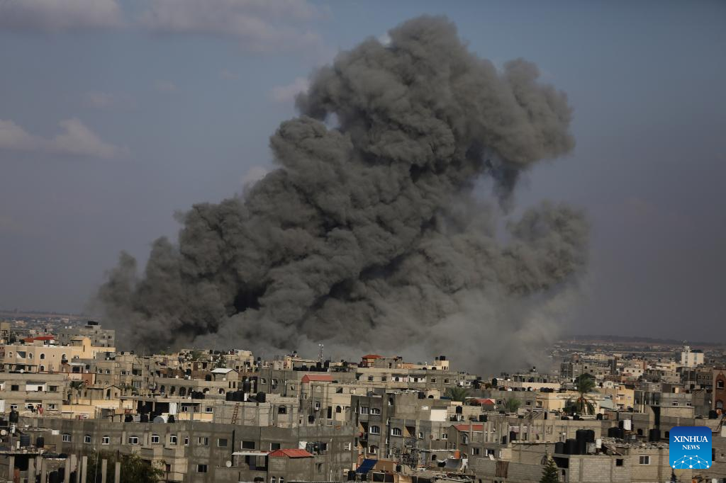 Smoke billows following an Israeli airstrike in the southern Gaza Strip city of Rafah, on Oct. 11, 2023. (Photo by Khaled Omar/Xinhua)