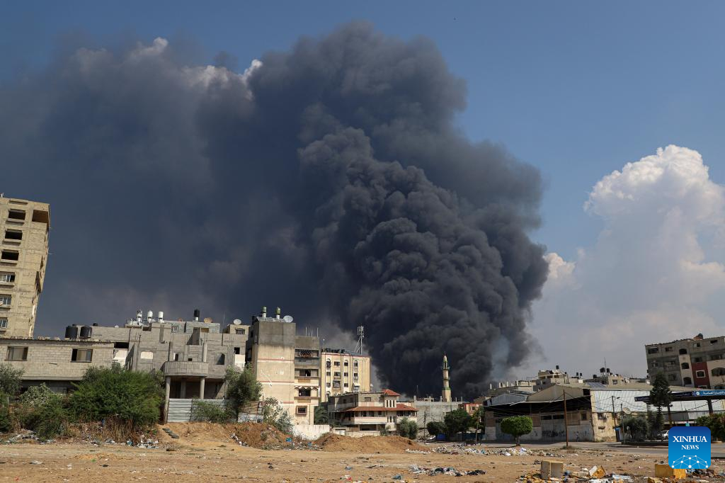 Smoke billows following an Israeli airstrike in Gaza City, on Oct. 11, 2023. (Photo by Rizek Abdeljawad/Xinhua)