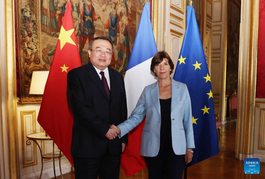 During his visit, Liu met and exchanged views with French Foreign Minister Catherine Colonna, French President's Diplomatic Counselor Emmanuel Bonne, Chairman of the Committee on Foreign Affairs, Defense and Armed Forces of the French Senate Cedric Perrin, Chairman of the France-China Friendship Group of the French National Assembly Eric Alauzet, General Secretary of the French party Renaissance Stephane Sejourne, General Secretary of the French party Les Republicains Annie Genevard, and representatives from the French business community.