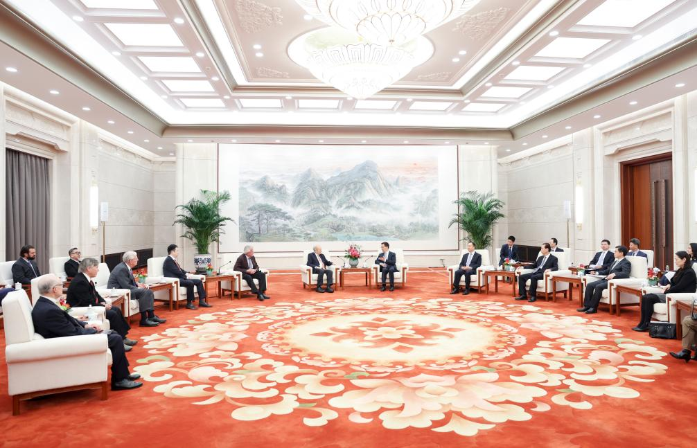 Chinese Vice President Han Zheng meets with the U.S. representatives who are in Beijing to attend the fifth meeting of the China-U.S. Eminent Persons Forum in Beijing, capital of China, Oct. 12, 2023. (Xinhua/Ding Haitao)