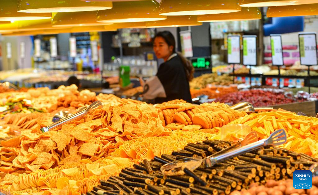A customer shops at a supermarket in Chengbu Miao Autonomous County of Shaoyang, central China's Hunan Province, Oct. 13, 2023.