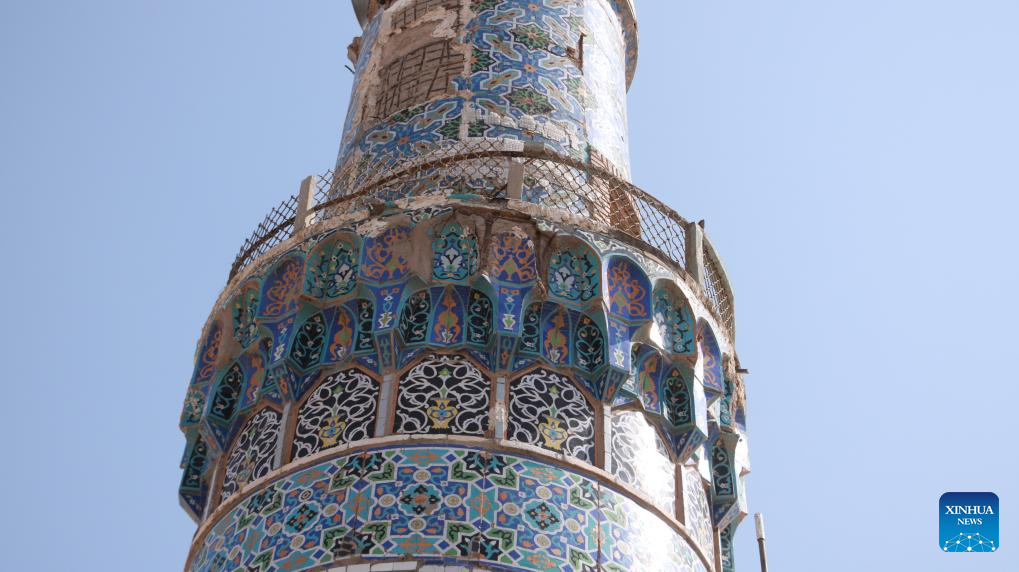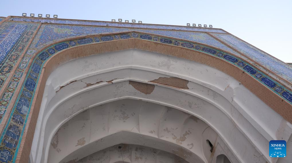 This photo taken on Oct. 12, 2023 shows a partial view of the Great Mosque of Herat after a series of earthquakes in Herat Province, Afghanistan. Several historical monuments and cultural heritages have been damaged due to a series of devastating earthquakes and aftershocks that jolted west Afghanistan's Herat and the neighboring Badghis and Farah provinces, Herat's Provincial Director for Information and Culture Ahmadullah Muttaqi said on Thursday. (Photo by Mashal/Xinhua)