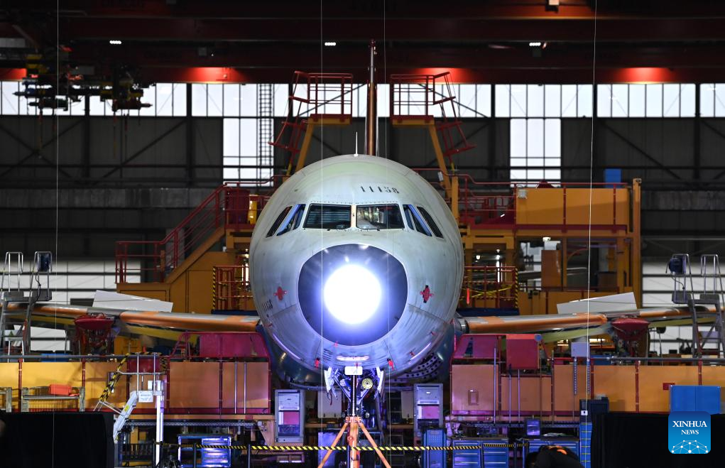 The first Airbus A321 aircraft is produced at the Final Assembly Line Asia (FALA) facility in north China's Tianjin on Nov. 9, 2022.