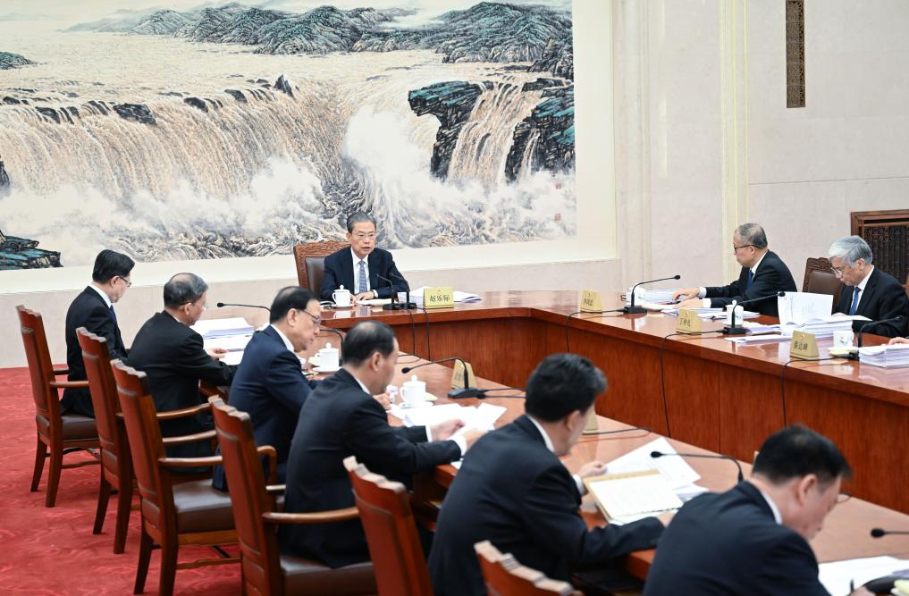 Zhao Leji, chairman of the National People's Congress (NPC) Standing Committee, presides over the 13th meeting of the Council of Chairpersons of the 14th NPC Standing Committee at the Great Hall of the People in Beijing, capital of China, Oct. 13, 2023. (Xinhua/Zhang Ling)