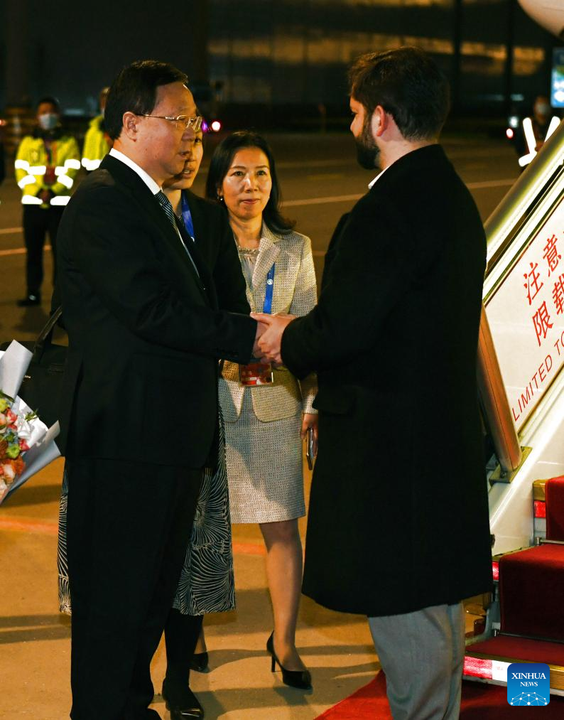 Chilean President Gabriel Boric arrives in Beijing, capital of China, Oct. 15, 2023. Boric will attend the third Belt and Road Forum for International Cooperation. (Xinhua/Peng Ziyang)