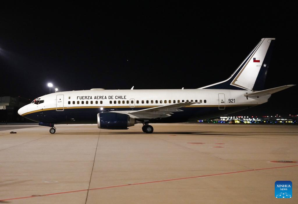An airplane carrying Chilean President Gabriel Boric lands in Beijing, capital of China, Oct. 15, 2023. Boric will attend the third Belt and Road Forum for International Cooperation. (Xinhua/Peng Ziyang)