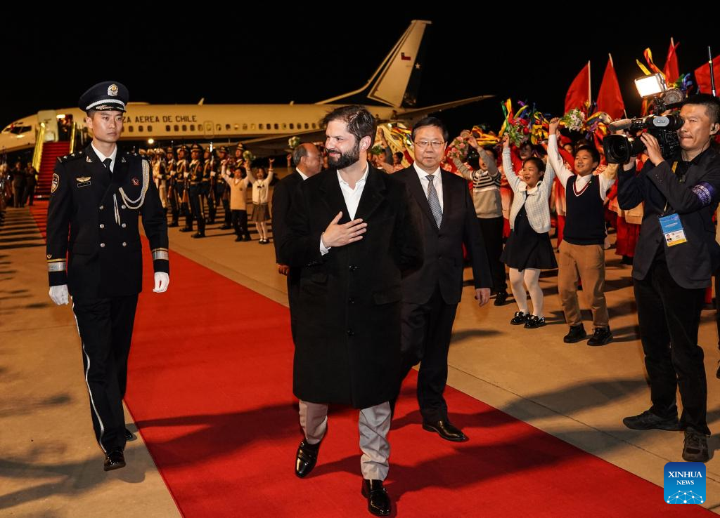 BEIJING, Oct. 15 (Xinhua) -- Chilean President Gabriel Boric on Sunday arrived in Beijing to attend the third Belt and Road Forum for International Cooperation.?