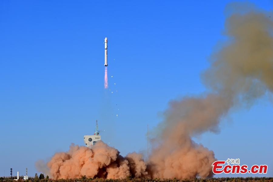 A Long March-2D carrier rocket carrying the Coded Yunhai-1 04 satellite blasts off from the Jiuquan Satellite Launch Center in northwest China, Oct. 15, 2023. (Photo: China News Service/Wang Jiangbo)