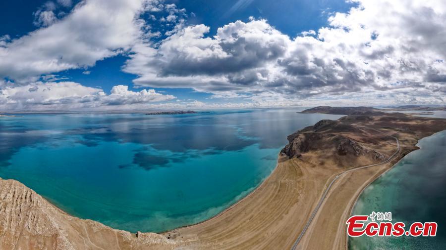 Aerial view of Serling Tso Lake in southwest China's Tibet Autonomous Region. It is the largest lake in Tibet and the second-biggest saltwater lake in China, with an altitude of 4,530 meters. (Photo: China News Service/Jiang Feibo)