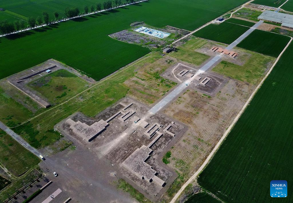 This aerial photo taken on April 21, 2017 shows the ruins of an old palace of the ancient city of Han (202 B.C.- A.D. 220) and Wei (220-265) dynasties in Luoyang, central China's Henan Province. About 2,000 years ago, in the Western Han Dynasty (202 B.C.- A.D. 25), a Chinese envoy named Zhang Qian began his expedition to the Western Regions and opened a trade route that later became the Silk Road.