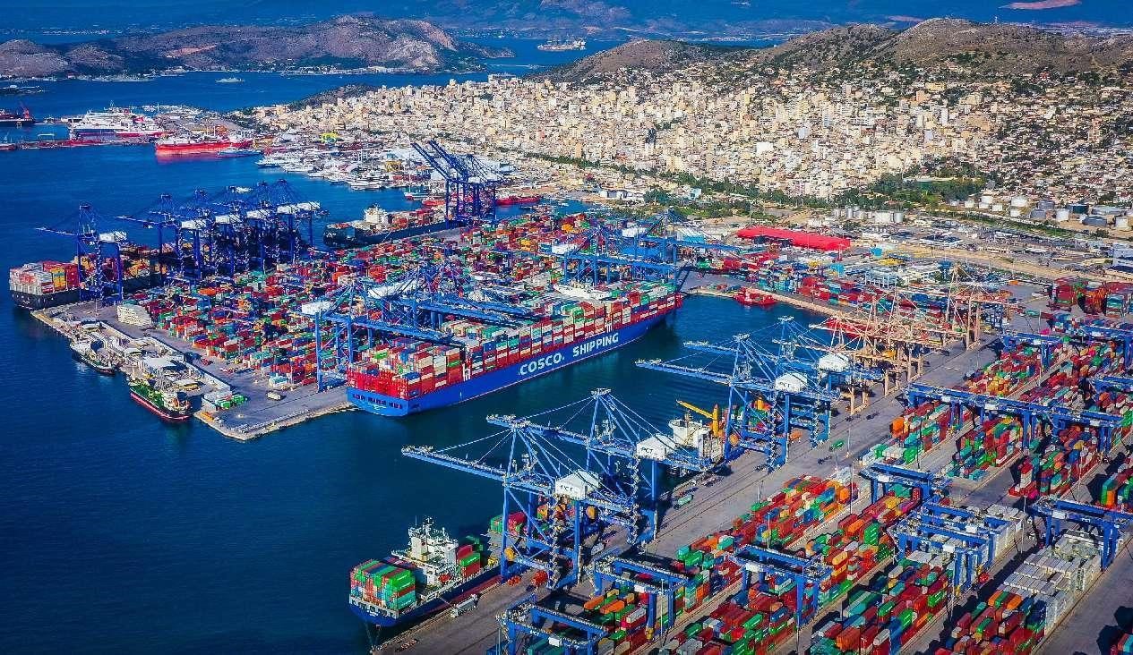 Photo shows a distant view of the container terminal of the Piraeus Port in Greece. (Photo/Zhang Zhiming)