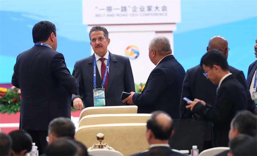 Business executives interact during the Belt and Road CEO Conference of the third Belt and Road Forum for International Cooperation at the National Convention Center in Beijing on Tuesday. [Photo by Zou Hong / CHINA DAILY]