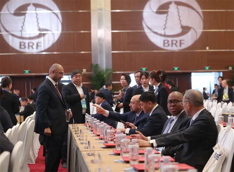 Business executives interact during the Belt and Road CEO Conference of the third Belt and Road Forum for International Cooperation at the National Convention Center in Beijing on Tuesday. [Photo by Zou Hong / CHINA DAILY]