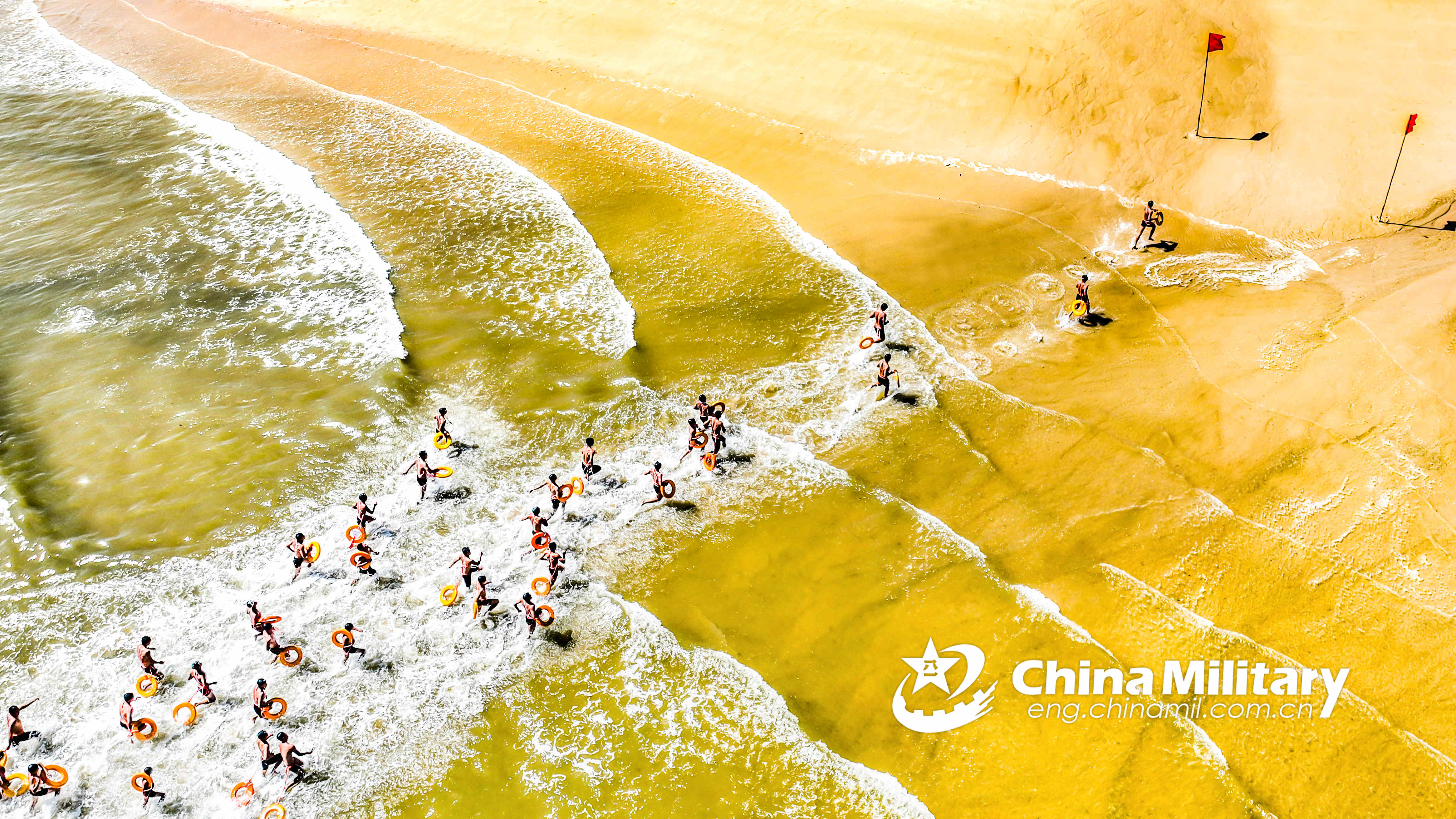 Soldiers assigned to an army unit under the PLA Eastern Theatre Command sprint towards the beachhead during a breaststroke contest on September 19, 2023.(eng.chinamil.com.cn/Photo by Liu Dewen)