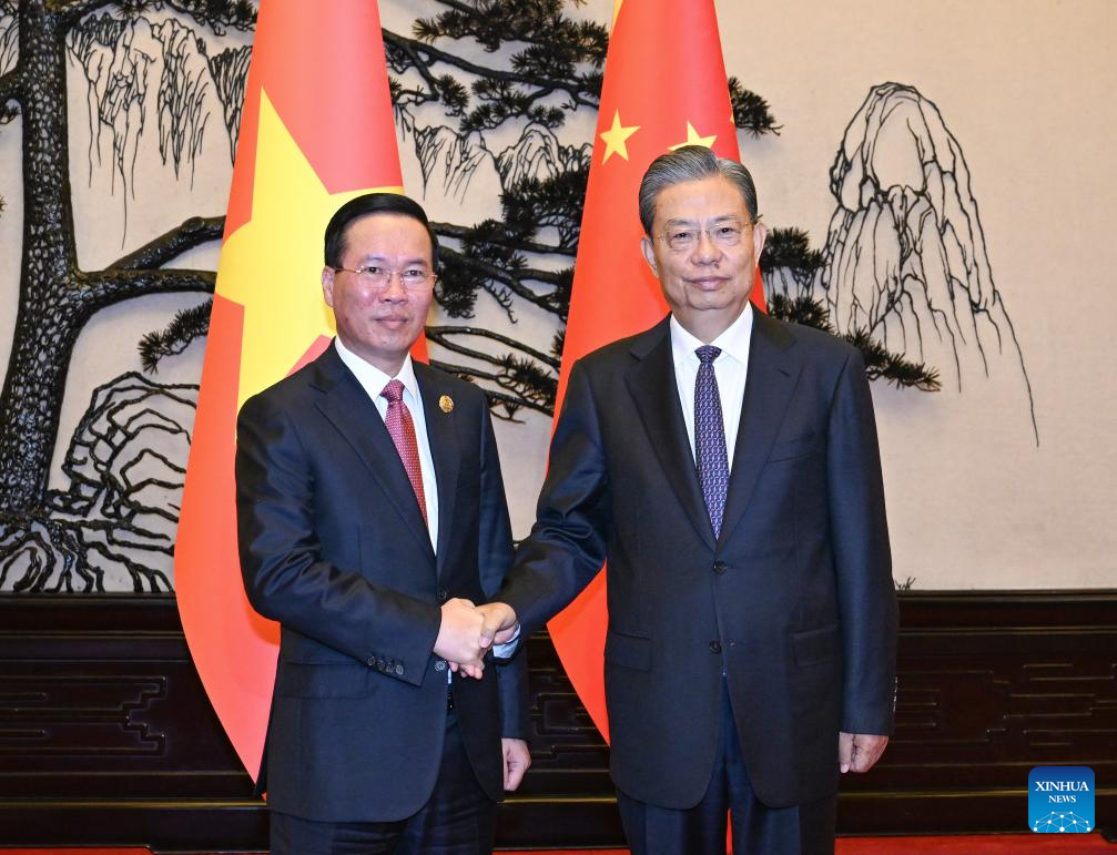 In the meeting with Thuong, Zhao, chairman of the National People's Congress (NPC) Standing Committee, noted that 2023 marks the 15th anniversary of the China-Vietnam comprehensive strategic cooperative partnership and the two countries are working to build a community with a shared future with strategic significance.