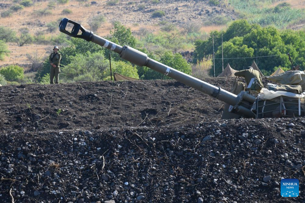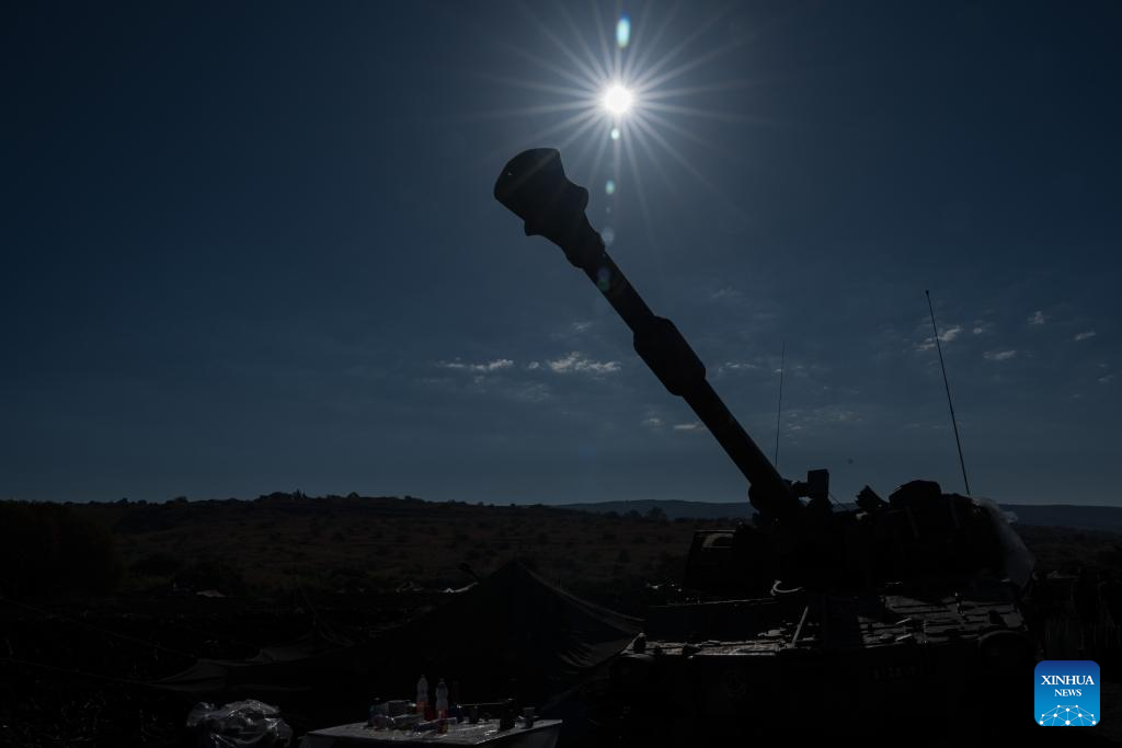 Photo taken on Oct. 18, 2023 shows a position of a self-propelled howitzer deployed in northern Israel bordering Lebanon. (Ayal Margolin/JINI via Xinhua)