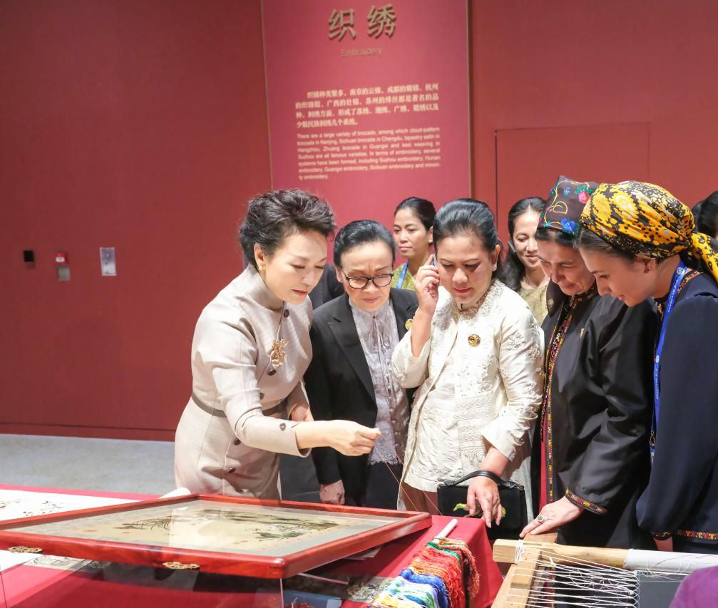 Peng Liyuan, spouses of foreign leaders visit China National Arts and Crafts Museum