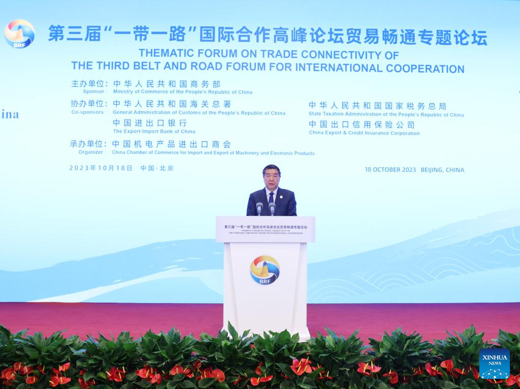 The Thematic Forum on Trade Connectivity of the third Belt and Road Forum for International Cooperation is held in Beijing, capital of China, Oct. 18, 2023. (Xinhua/Chen Bin)
