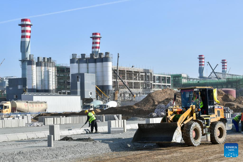 This photo taken on Oct. 16, 2023 shows the construction site of a silicon company at an industrial park of Lanzhou New Area in northwest China's Gansu Province. (Xinhua/Fan Peishen)
