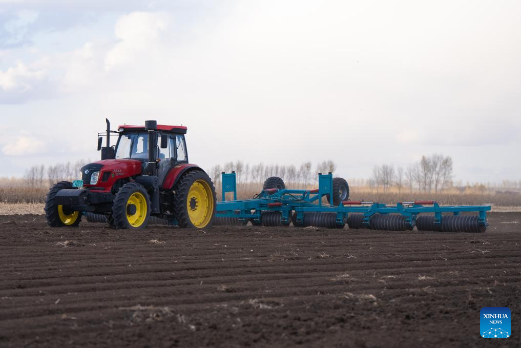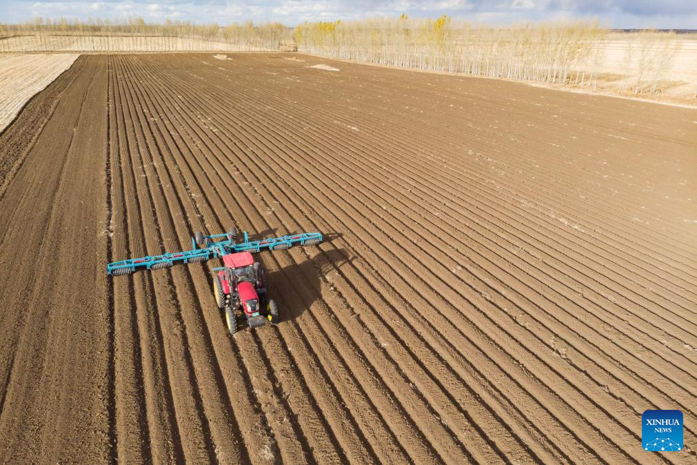 A farmer prepares a field for future planting in Shangzhi City, northeast China's Heilongjiang Province, Oct. 18, 2023. China's top grain producer Heilongjiang Province is embracing the harvest season of this year while preparing for next year's planting. (Xinhua/Xie Jianfei)
