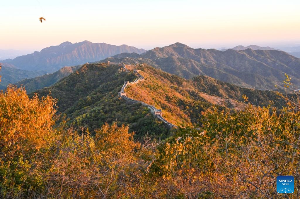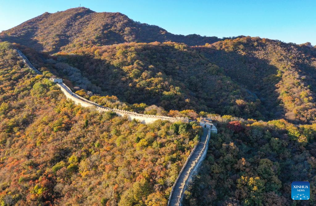 This photo taken on Oct. 21, 2023 shows the autumn scenery of the Mutianyu section of the Great Wall in Beijing, capital of China. (Xinhua/Chen Yehua)