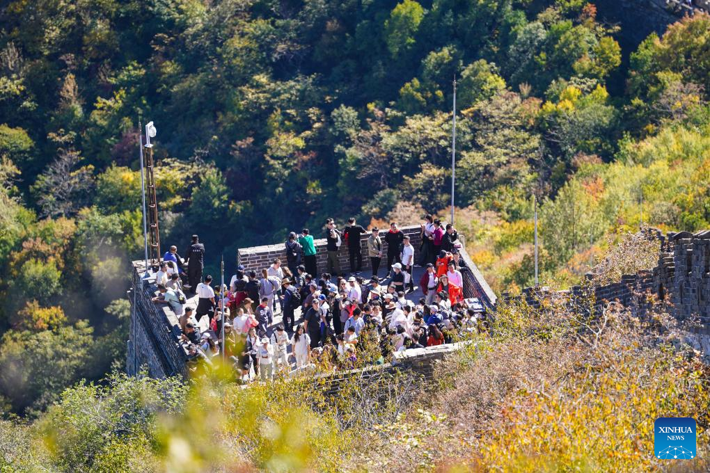 Tourists visit the Mutianyu section of the Great Wall in Beijing, capital of China, Oct. 21, 2023. (Xinhua/Chen Yehua)
