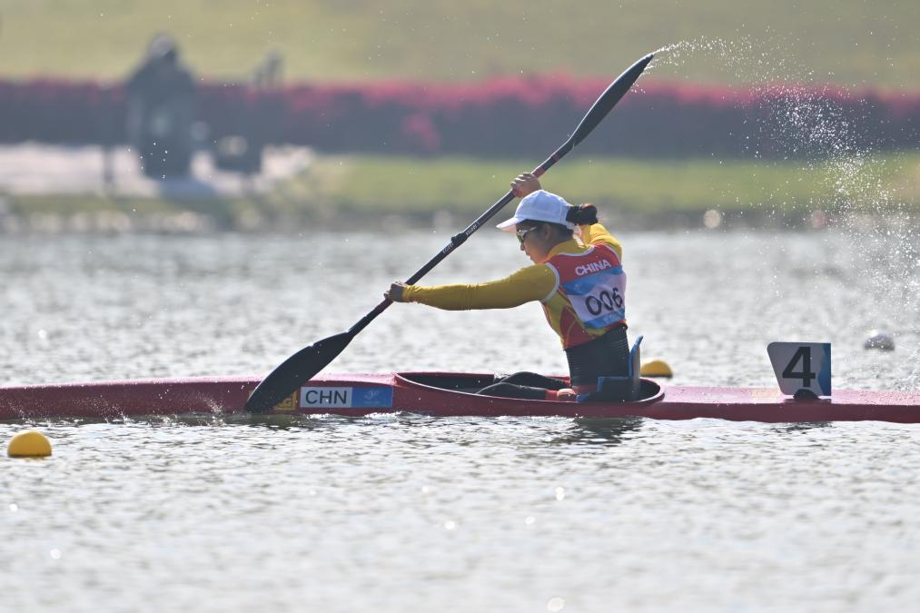Xie Maosan of China competes during the Women's KL1 Final of Canoe during the 4th Asian Para Games in Hangzhou, east China's Zhejiang Province, Oct. 23, 2023. (Xinhua/Cai Yang)