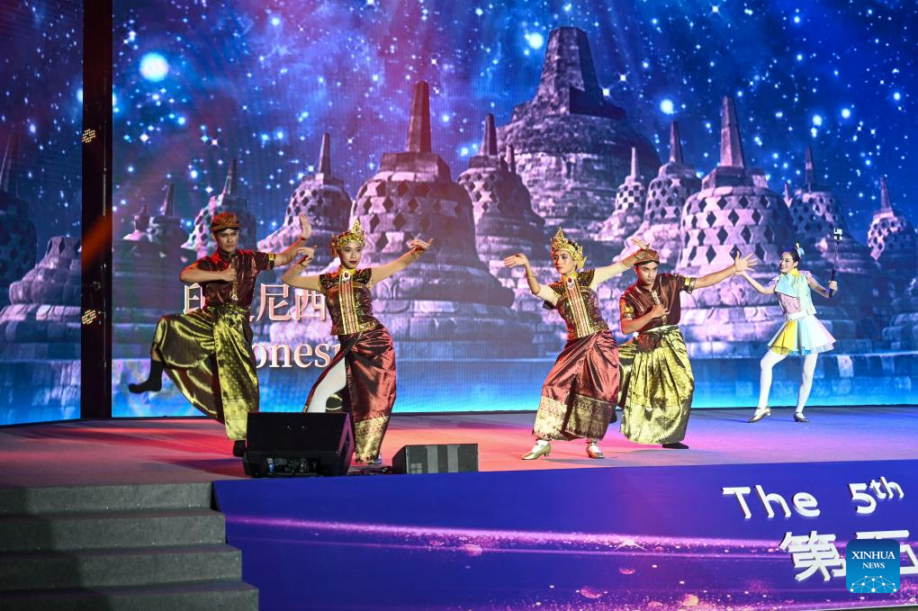 Artists perform during the opening ceremony of the 5th ASEAN-China Media Week in Putrajaya, Malaysia, Oct. 21, 2023. The opening ceremony of the 5th ASEAN-China Media Week, co-organized by China's National Radio and Television Administration (NRTA), the Malaysian Ministry of Communications and Digital, the people's government of southern China's Guangxi Zhuang Autonomous Region, was held at the administration center of Putrajaya on Saturday. (Xinhua/Cheng Yiheng)
