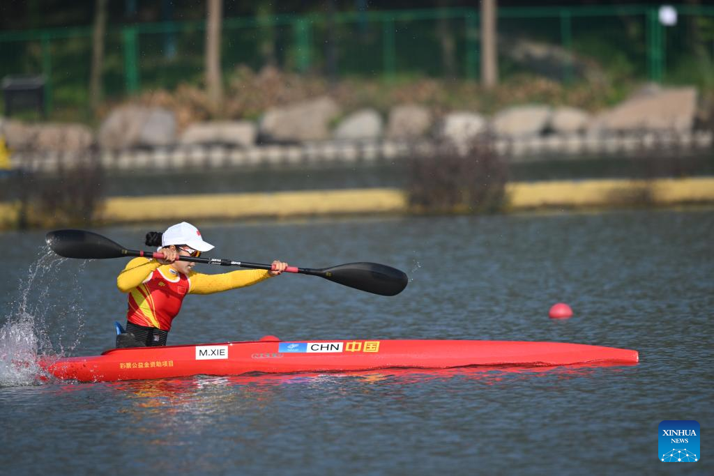HANGZHOU, Oct. 23 (Xinhua) -- China's canoeist Xie Maosan claimed the first gold medal of the Hangzhou Asian Para Games on Monday when she won the women's KL1 canoe final in 55.478 seconds.